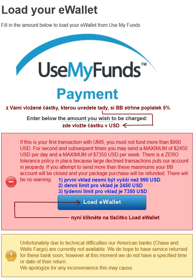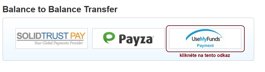 3) Na další stránce dole je odkaz na dobíjení „eWallet“ pomocí „UseMyFunds“. Tento odkaz: